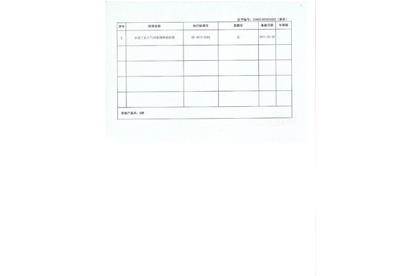 江蘇省企業(yè)產品執(zhí)行標準證書